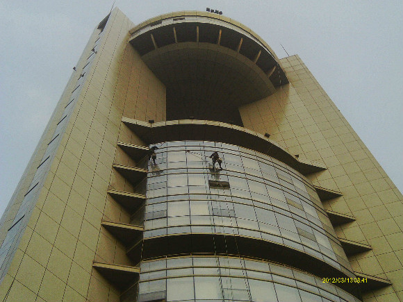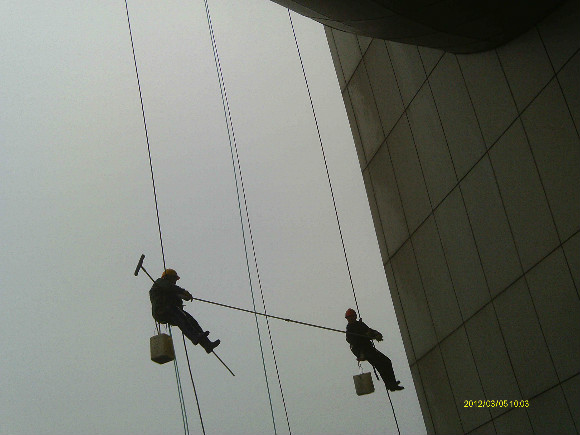 高層外墻工程包括: 高層外墻清潔、高層玻璃幕清潔、高層外墻粉刷、高空外墻廣告安裝。因為高層外墻存在著危險性和復雜性, 所以這項工作是有著相當程度的科學性和專業性。